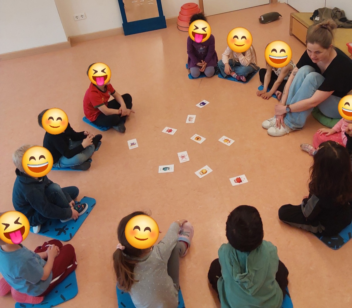Seit dem 26.02. treffen sich die Vorschulkinder des Jahrgangs 26/27 jeden Donnerstag mit Eva. Mit Hilfe von Gefühlskarten (siehe Bild), Geschichten, Gedichten und Spielen sollen die Kinde die Möglichkeit bekommen sich, ihre Gefühle und die Gefühle anderer kennenzulernen. Außerdem soll auch der Umgang mit diesen Gefühlen erlernt werden.
